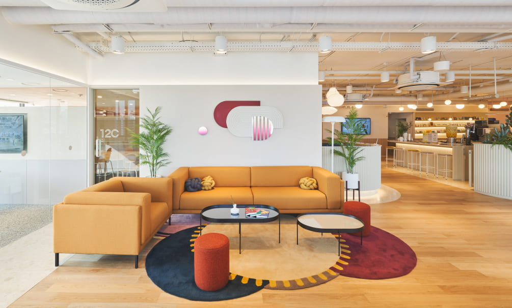 패스트파이브의 디자인은 크게 네 차례 변화를 거듭하며 발전해 왔습니다. 도입기 (2015~2017)에는 당시 인테리어 트렌드를 민첩하게 공간에 적용하는 전략을 택했어요. 강렬한 색감을 포인트 컬러로 쓰고, 노출된 천장 배관과 자연스러운 소재감이 특징인 인더스트리얼 스타일을 대표적인 예시로 들 수 있죠. 딱딱하고 정형화된 기존 오피스 인테리어의 한계를 타파하며, 공유오피스만의 강점을 전면에 내세웠습니다.