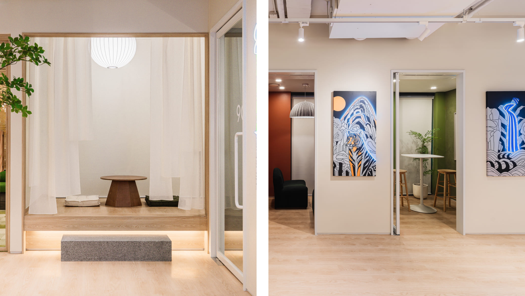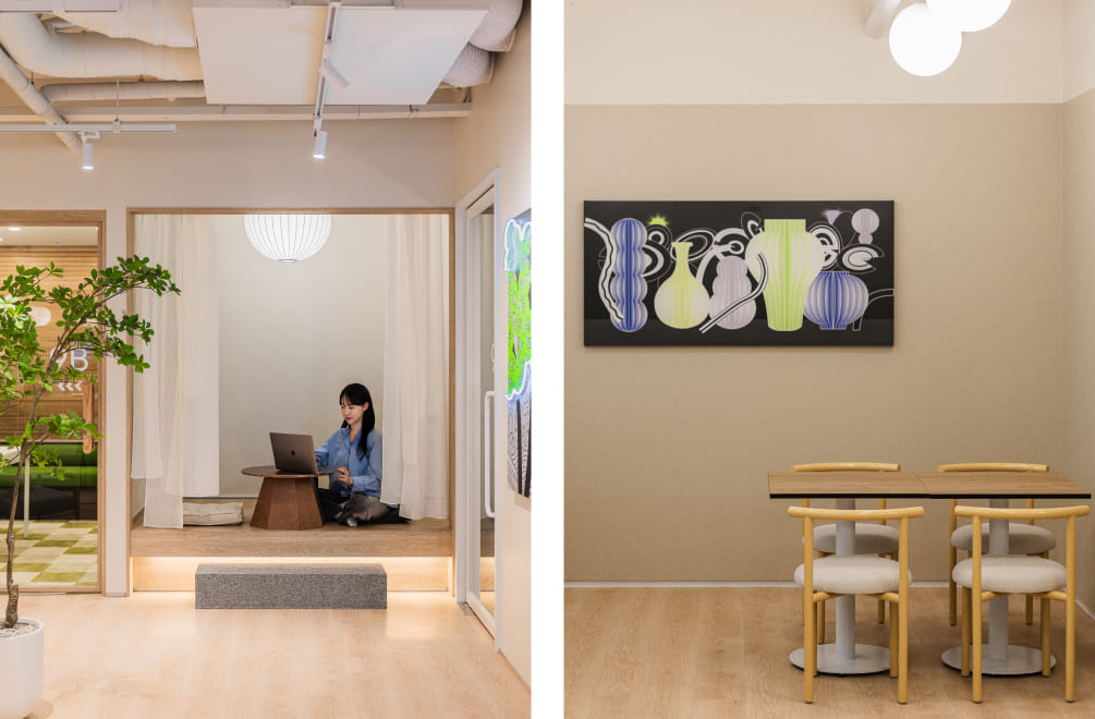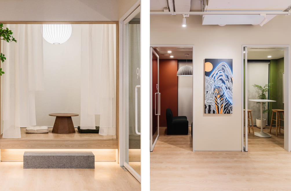 또, 강남점 라운지에는 처음으로 페어링룸을 구성해 봤는데요. 2인 규모의 미팅룸으로, 저렴한 크레딧으로 이용할 수 있어 효율적이에요. 캐주얼한 퀵 미팅이나 즉각적인 협업이 필요한 분들께 인기가 정말 많습니다.