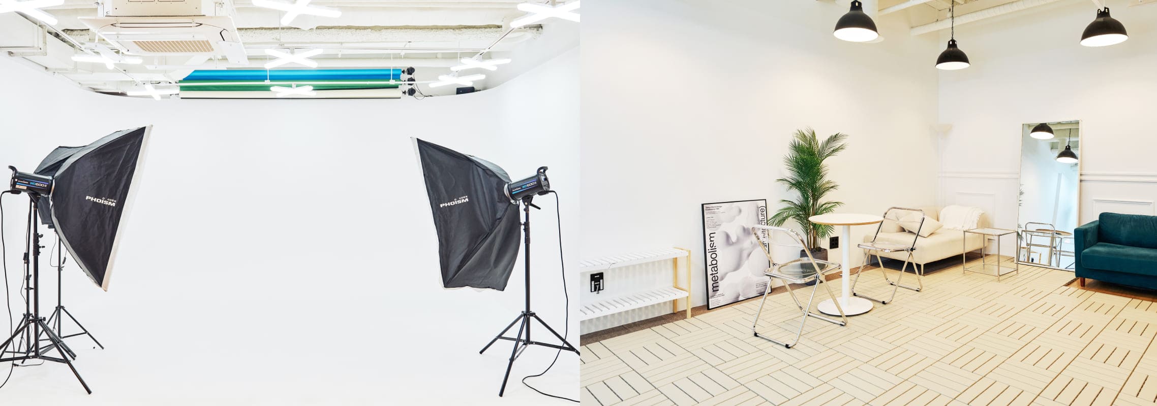 호리존, 크로마키, 판 조명 등 촬영 시설이 완비된 스튜디오를 외부 대관료 걱정 없이 사용하세요